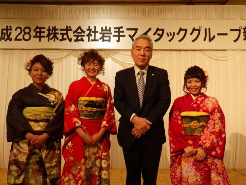 新入社員の女性陣は振袖姿で参加しました(*∩ω∩)