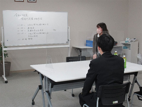 入社時に必要な書類の準備や、当社の概要・歴史を説明し、入社前にどのような会社なのか改めて勉強をしてもらいました。