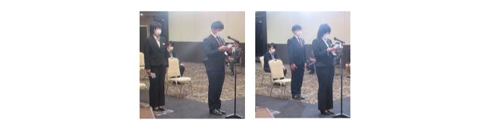 社長、会長より激励の言葉をいただき、新入社員2名はそれぞれ決意の言葉を述べました。